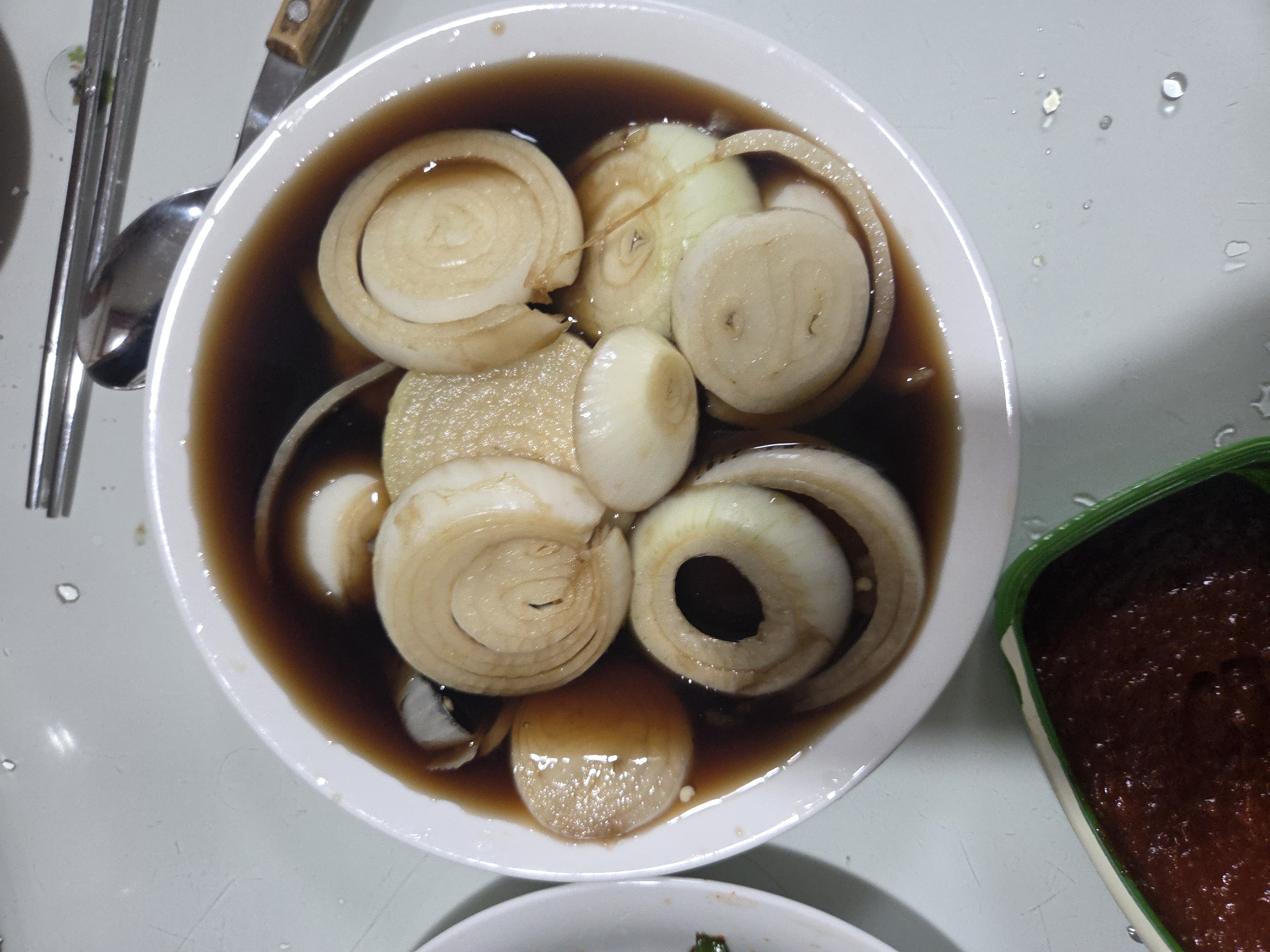 양파초절임: 양파, 간장, 식초, 설탕 (1:1:1 비율)